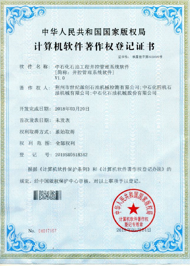 根据中石化工程公司要求,世纪派创组织人力独立开发完成中石化井控管理系统软件,填补国内空白。2018年完成软件开发,于2019年申请软件著作权。