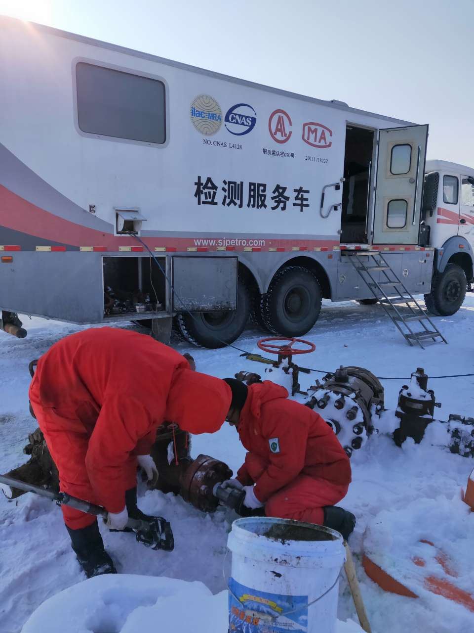 进入冬季,公司东北服务站员工克服天气寒冷、地面结冰等气候条件,在冰天雪地现场开展高压管汇检测服务。